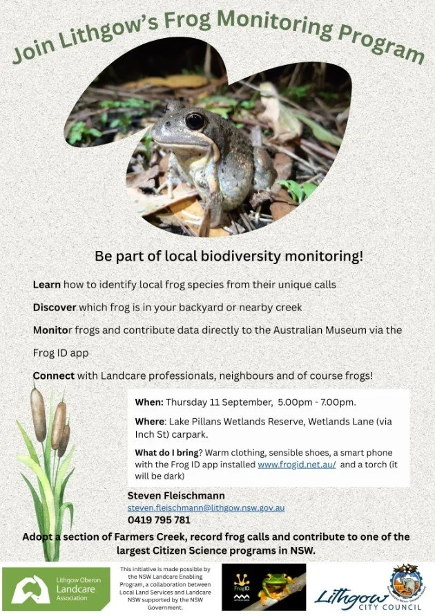 Be part of local biodiversity monitoring and help protect frog populations in Lithgow!